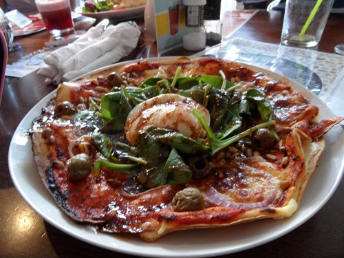 I chose the Florentina pizza which is topped with spinach, red onion, olives, pine nuts, mozzarella and a free range egg.